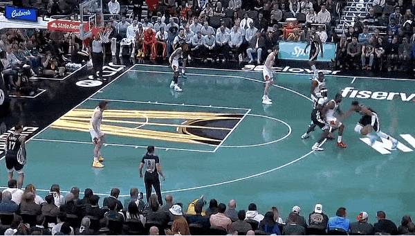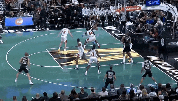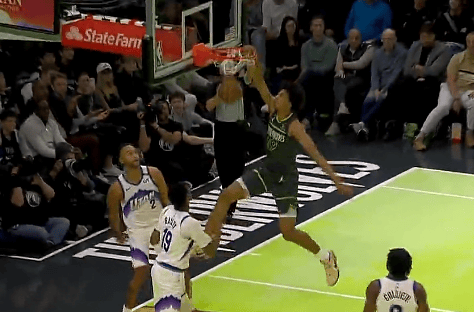 字母哥抢下前场篮板,篮下一打二不讲理隔扣打进2+1