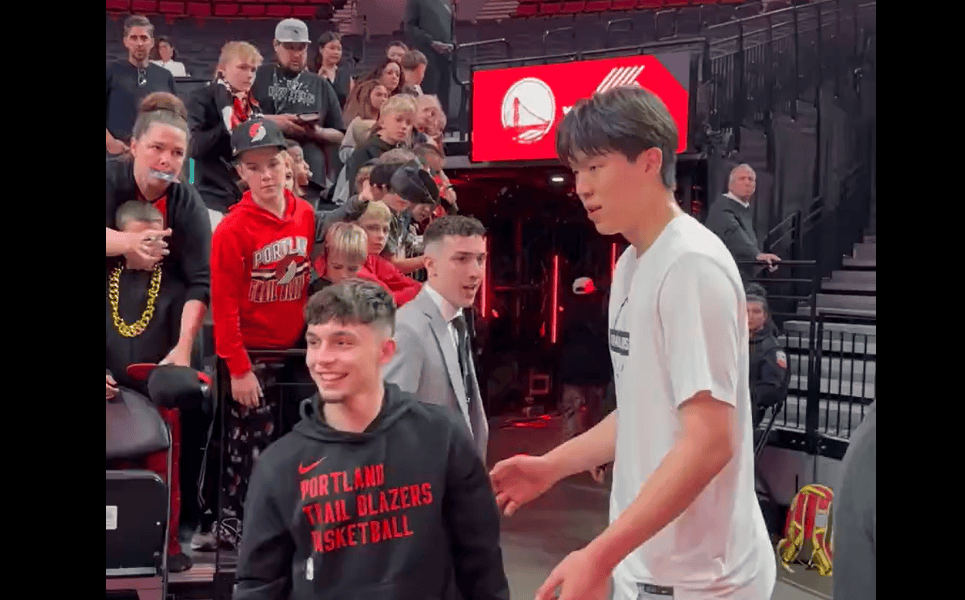 拓记分享开拓者赛前视频:杨瀚森与球迷合照签名