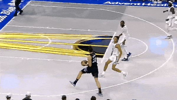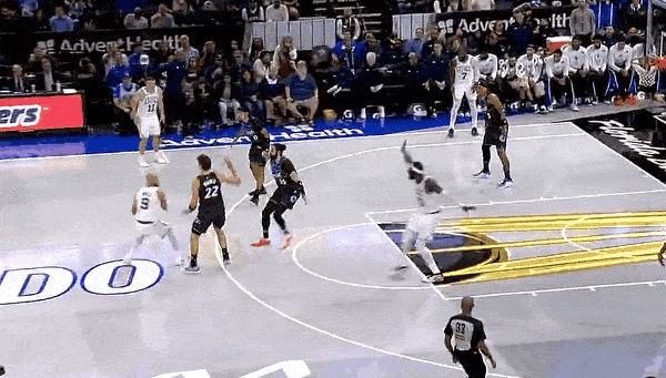 戈登连续运球变向加速突破,直接起飞单臂炸裂隔扣