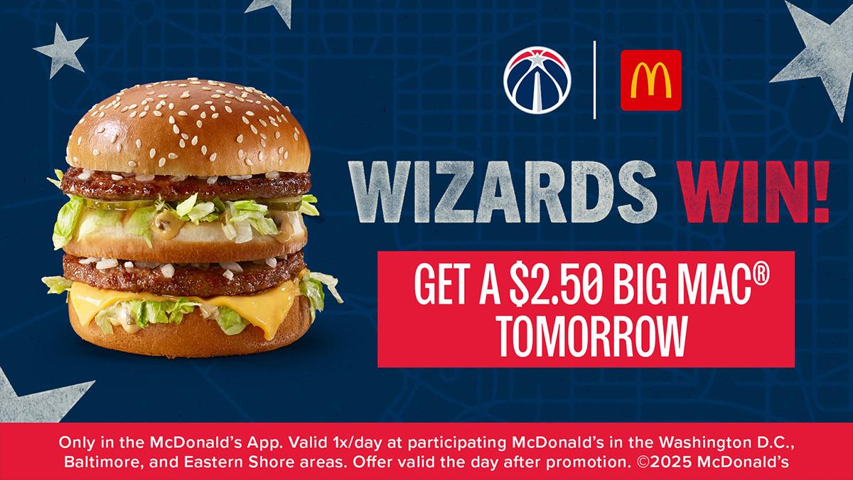 奇才官方:赢球回馈球迷,可领2.5美元巨无霸