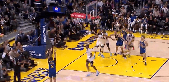 库里背传斯潘塞底角空位三分不中,勇士近3分钟未得分
