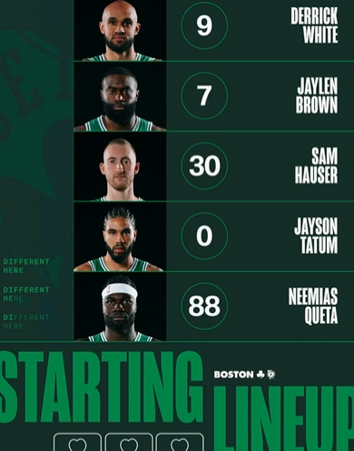 凯尔特人首发:怀特、布朗、豪瑟、塔图姆、克塔。