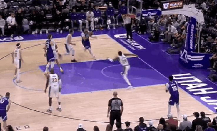 米切尔持球快速反击,追身干拔三分命中已砍下30分