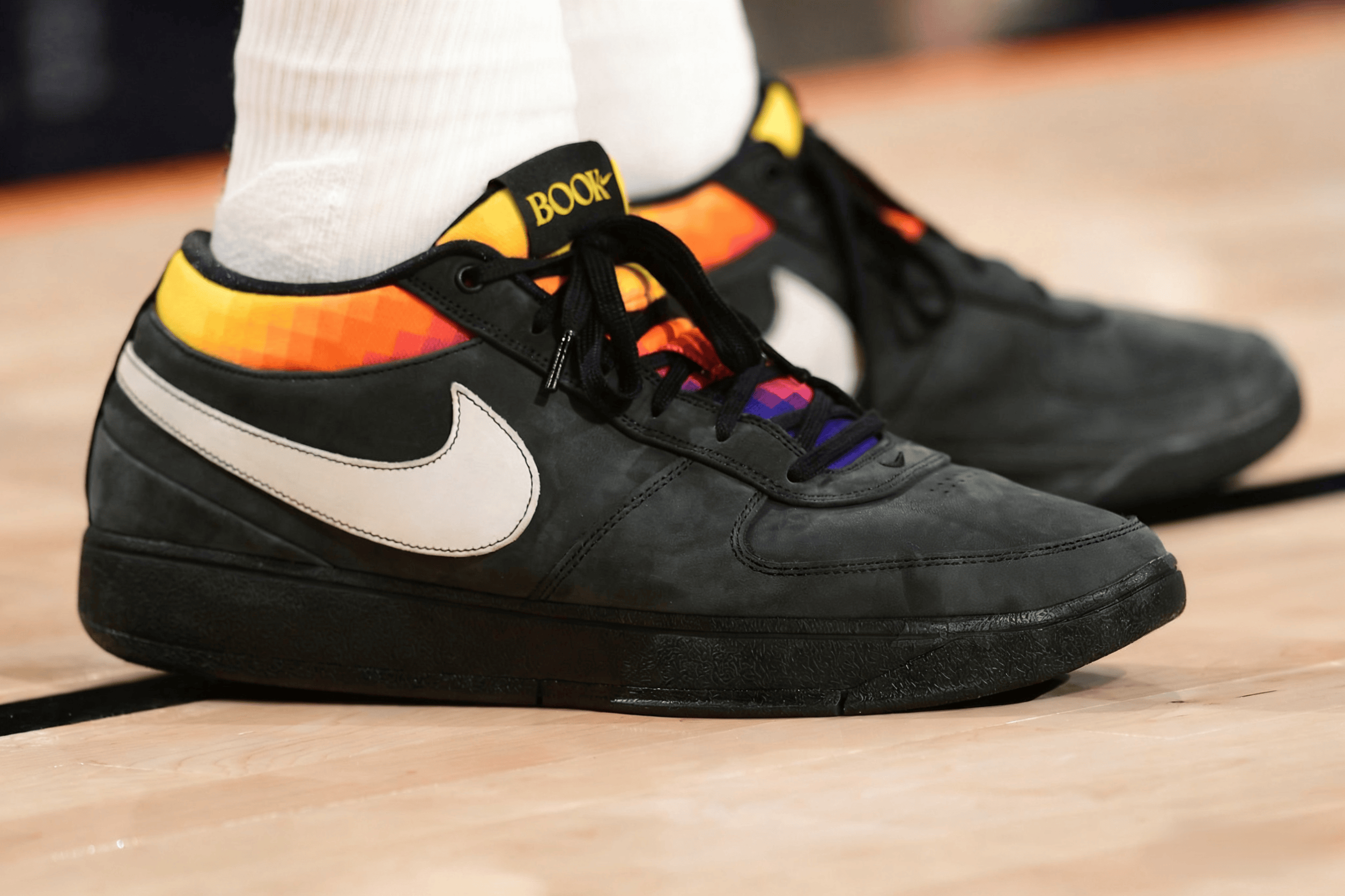 布克穿着山谷落日配色BOOK1,砍下33分5篮板7助攻