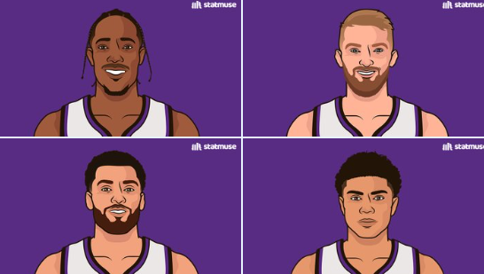 StatMuse:国王阵中拥有本赛季各类正负值最低球员