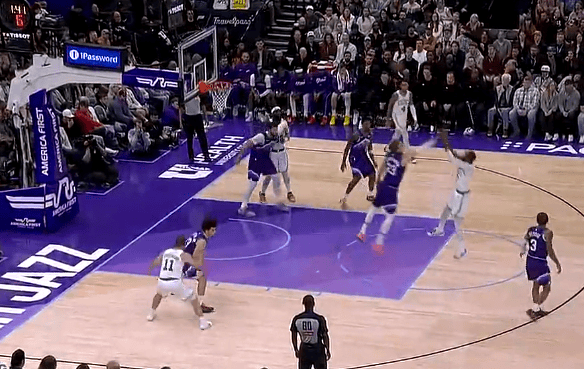 考沃德反击单手劈扣得手,砍下28分刷新个人生涯得分新高