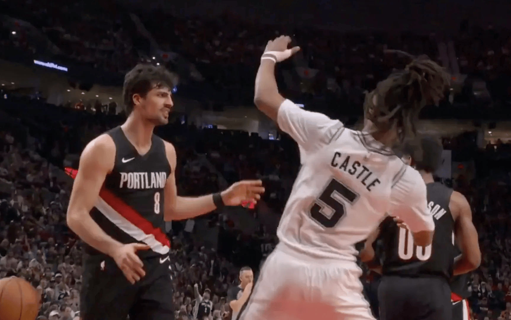 杜伦全场10投3中,得到8分9篮板1助攻5封盖6犯离场