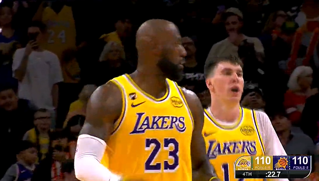 斯马特几乎空篮没有上进,詹姆斯补篮得手湖人扳平比分
