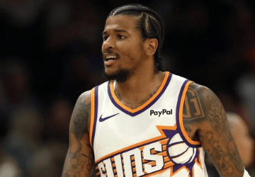 布克穿着黑橙色BOOK2,得到22分6篮板5助攻1抢断