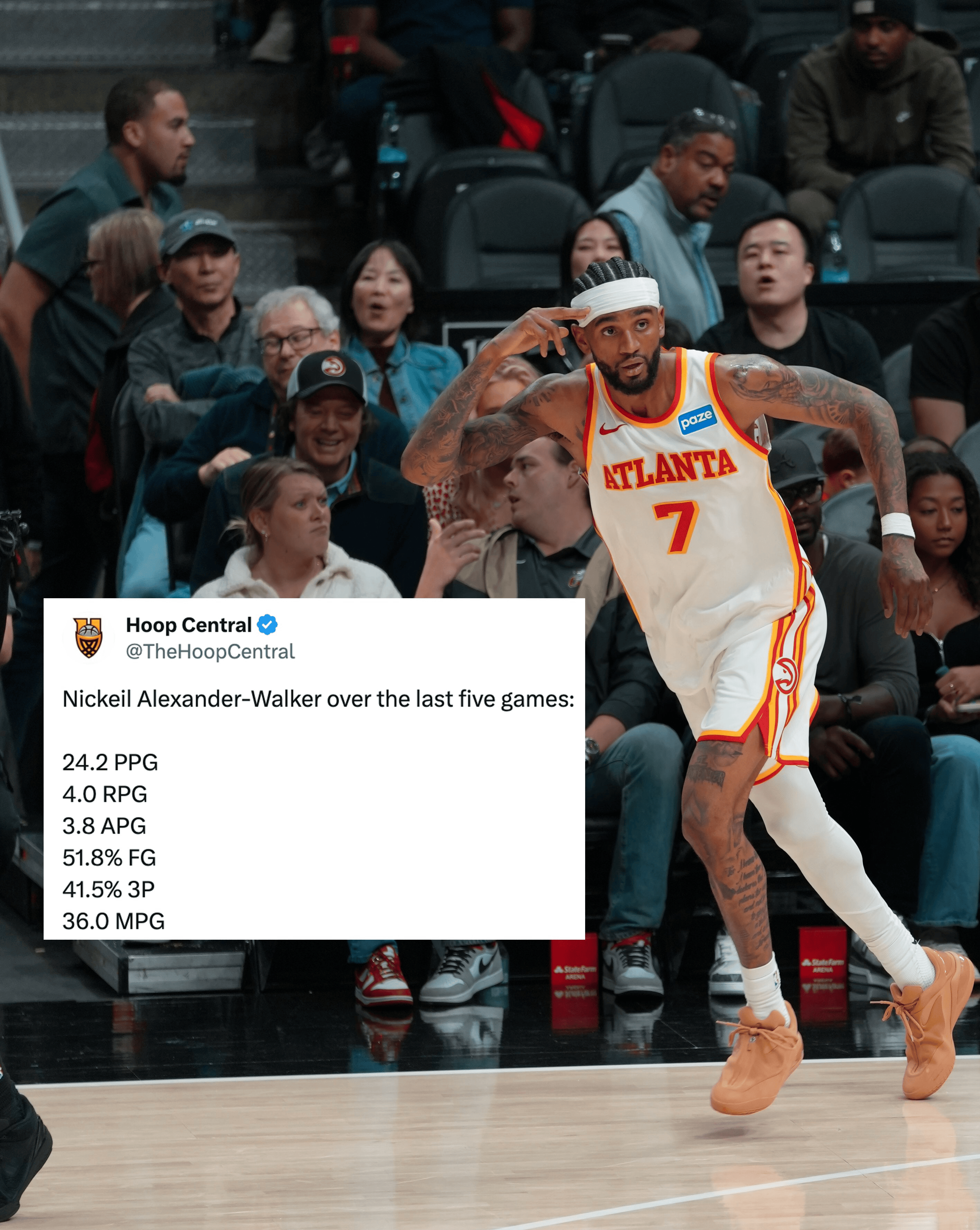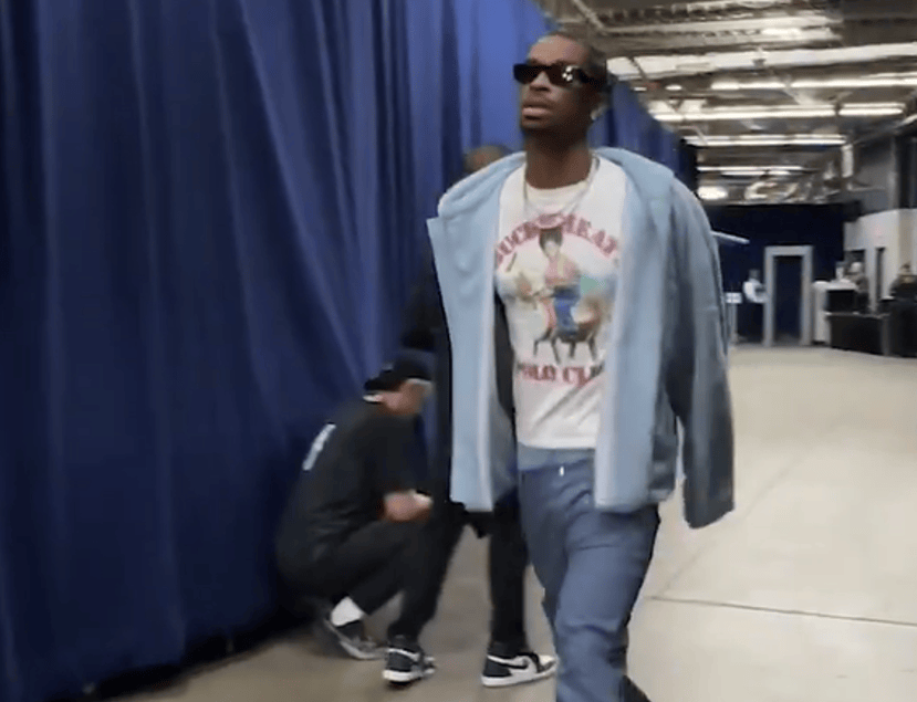 亚历山大身穿时尚服饰步入球馆,赛前热身与球迷亲切互动