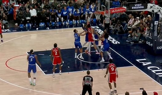 东契奇追身超远三分投进砍下15分,湖人首节39-25领先快船