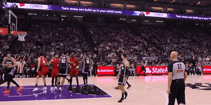 杨瀚森快速回防完成抢断,随后长传助攻卡马拉上篮打进