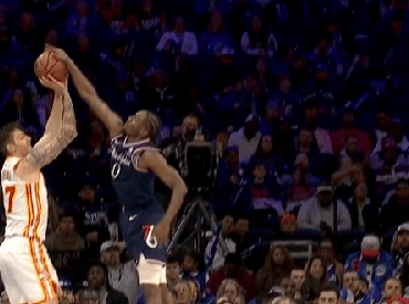 弗拉格体前变向过掉哈登左手再打进,上半场16中10砍下21分