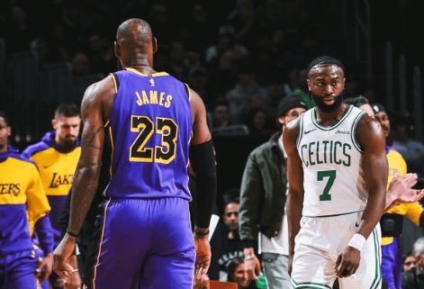 黄绿大战!凯尔特人官方晒杰伦-布朗和詹姆斯的照片预热比赛