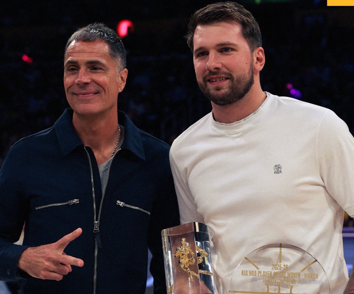 湖人官方晒东契奇领奖照:你的本赛季得分王和月最佳球员!