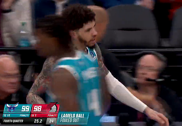 虎扑阿夫迪亚助攻罗威空接被吹提前犯规,鲍尔领到第六犯被罚下