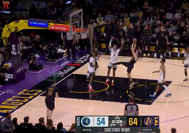 里夫斯造成犯规抛投也打2+1,湖人下半场22-9领先森林狼13分