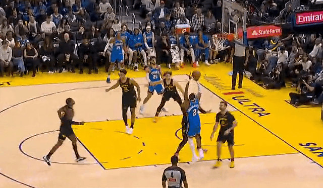 亚历山大背运急停后仰中投命中,雷霆领先勇士到30分
