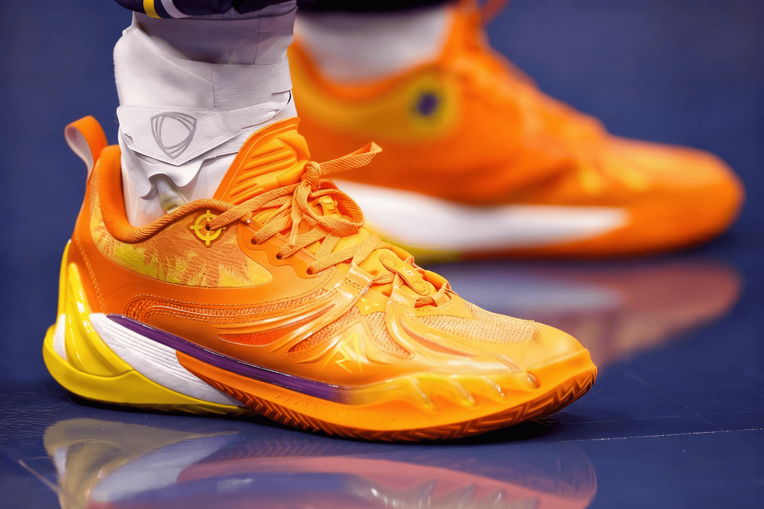 里夫斯穿着日落配色准者AR3,得到25分6篮板8助攻