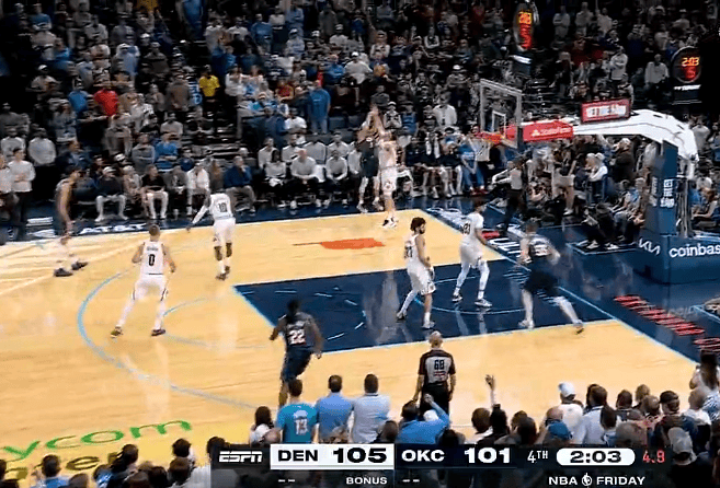 卡鲁索关键时刻抢断又投进2记三分,雷霆打出8-0反超掘金2分