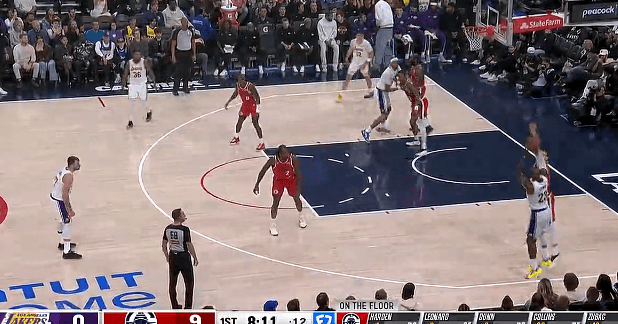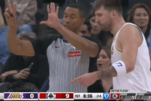 东契奇高难度出手命中打进第2球,湖人首节15-28落后快船