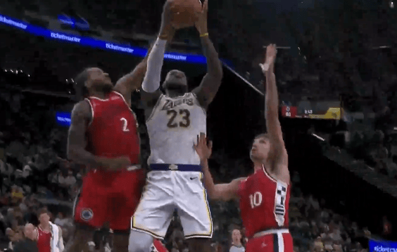 虎扑 5回复詹姆斯单挑祖巴茨三分投进,随后空切接球双手暴扣连拿7分