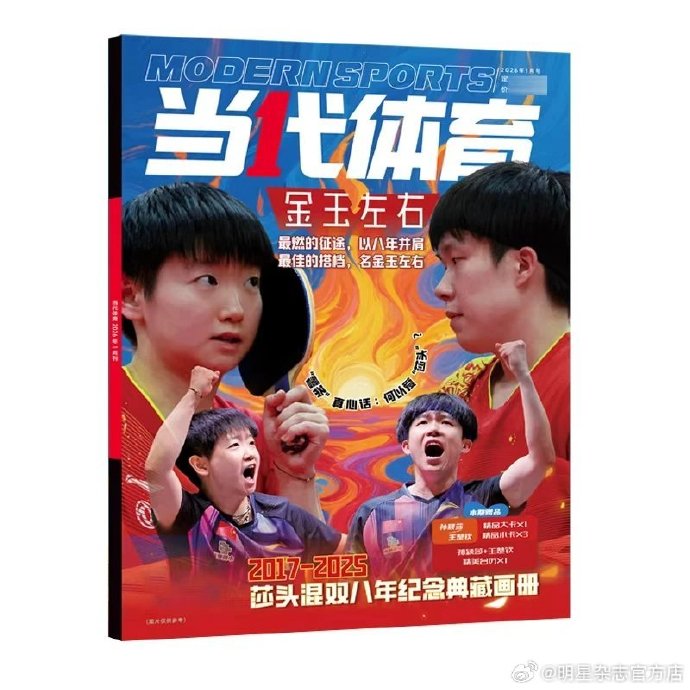孙颖莎王楚钦登上当代体育2026年1月刊封面,主题金玉左右