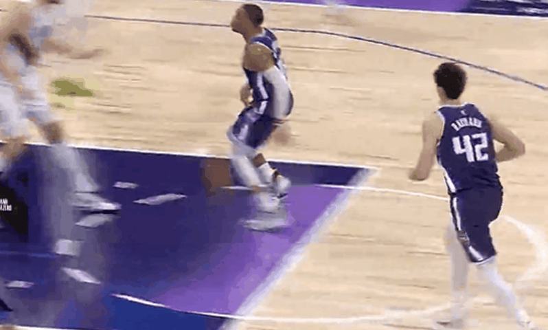 扳平比分!威少送出不看人击地背后传球,雷诺跟进抛投命中