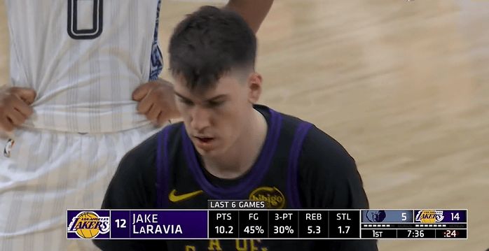 拉拉维亚近6场场均10.2分5.3板1.7断,命中率45%/30%
