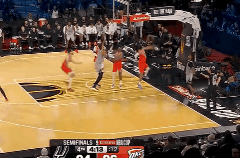 经典重现!文班亚马接底线高吊球,直接旱地拔葱隔人暴扣