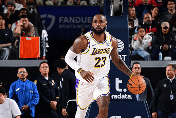 詹姆斯突破上篮打成2+1砍下29分,湖人末节追至仅差快船9分