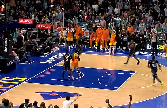 阿奴诺比底角三分抬手就有,尼克斯次节开局反超比分