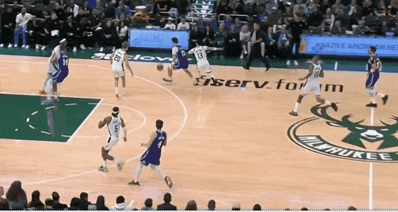 字母哥送出本场第一记助攻,AJ-格林命中三分雄鹿打出10-0