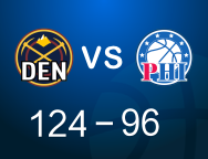[赛后]76人96-124掘金,沃特福德12分6助3冒,布劳恩22分5板3助