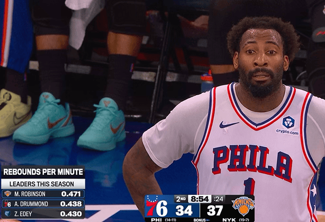 赛季每分钟篮板榜:米切尔-罗宾逊、德拉蒙德、扎克-伊迪