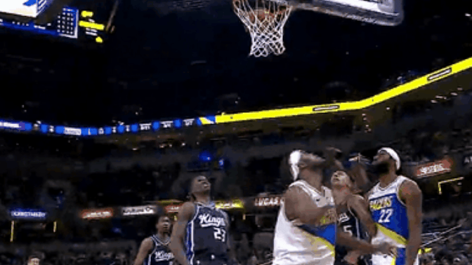 杰伦-布朗单打,对抗后侧着身体高难度抛投打进2+1