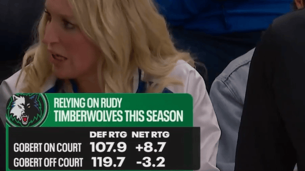 变数?本赛季戈贝尔在场时森林狼净效率值+8.7,反之-3.2