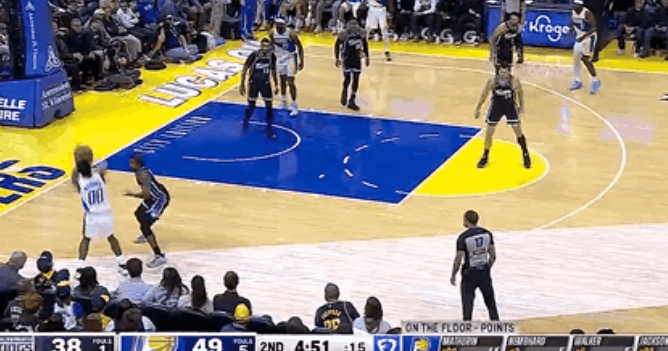 沃克上篮造成克利福德犯规,首节步行者已获得13次罚球机会