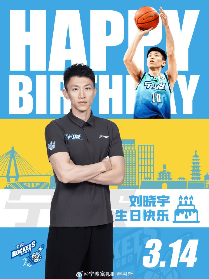 宁波男篮社媒分享生日海报:祝刘指导生日快乐