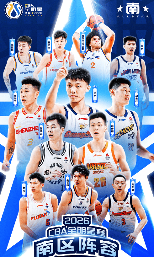 CBA全明星赛南区明星队名单:贺希宁领衔,孙铭徽缺席
