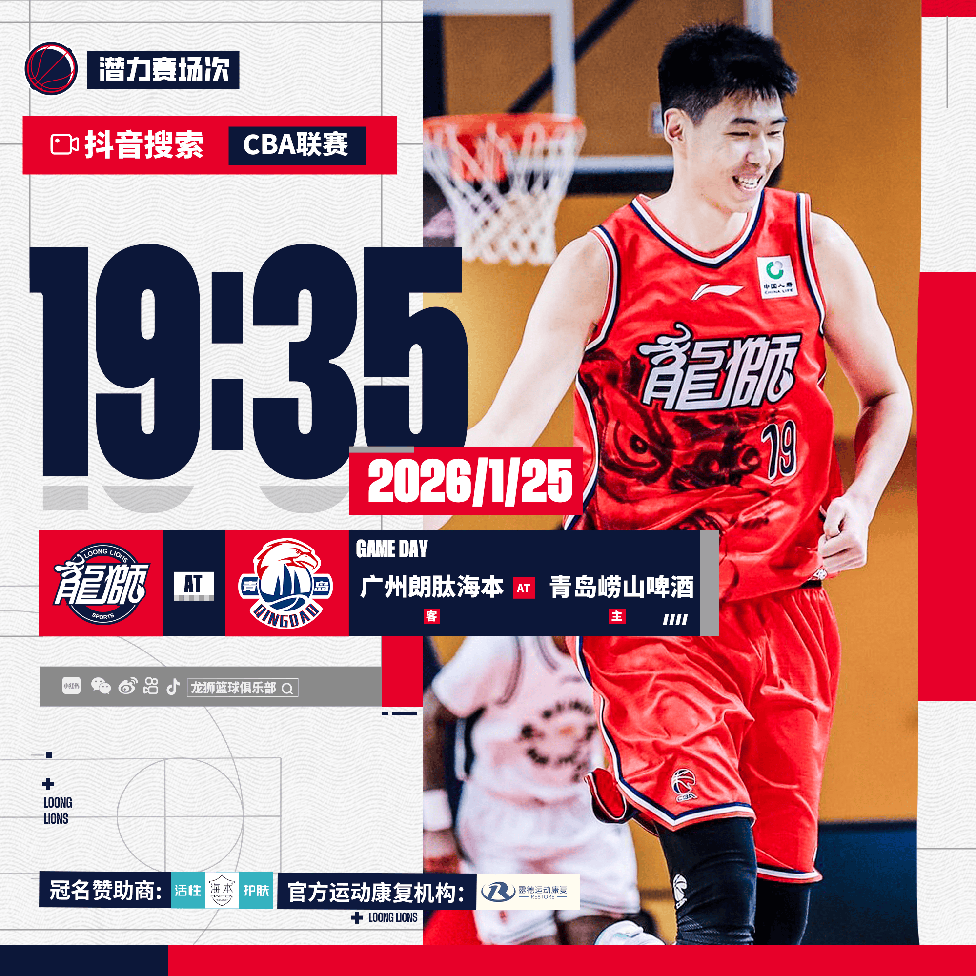 广州男篮分享赛事预告:球队将于明日对阵青岛男篮