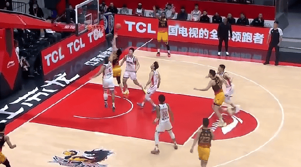 赵岩昊突击篮下欲上篮,王哲林高高跃起送出钉板大帽
