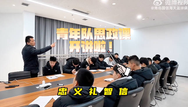 青岛男篮社媒分享青年队视频:青年队思政课开讲啦
