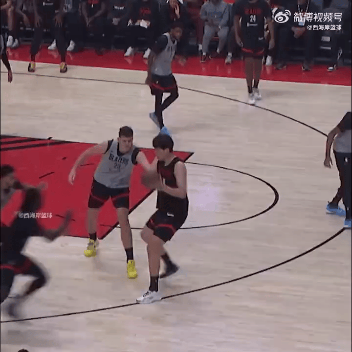 杨瀚森训练赛精彩瞬间,外线持球转身对抗克林根上篮得手