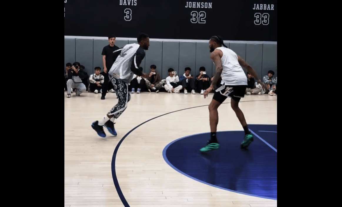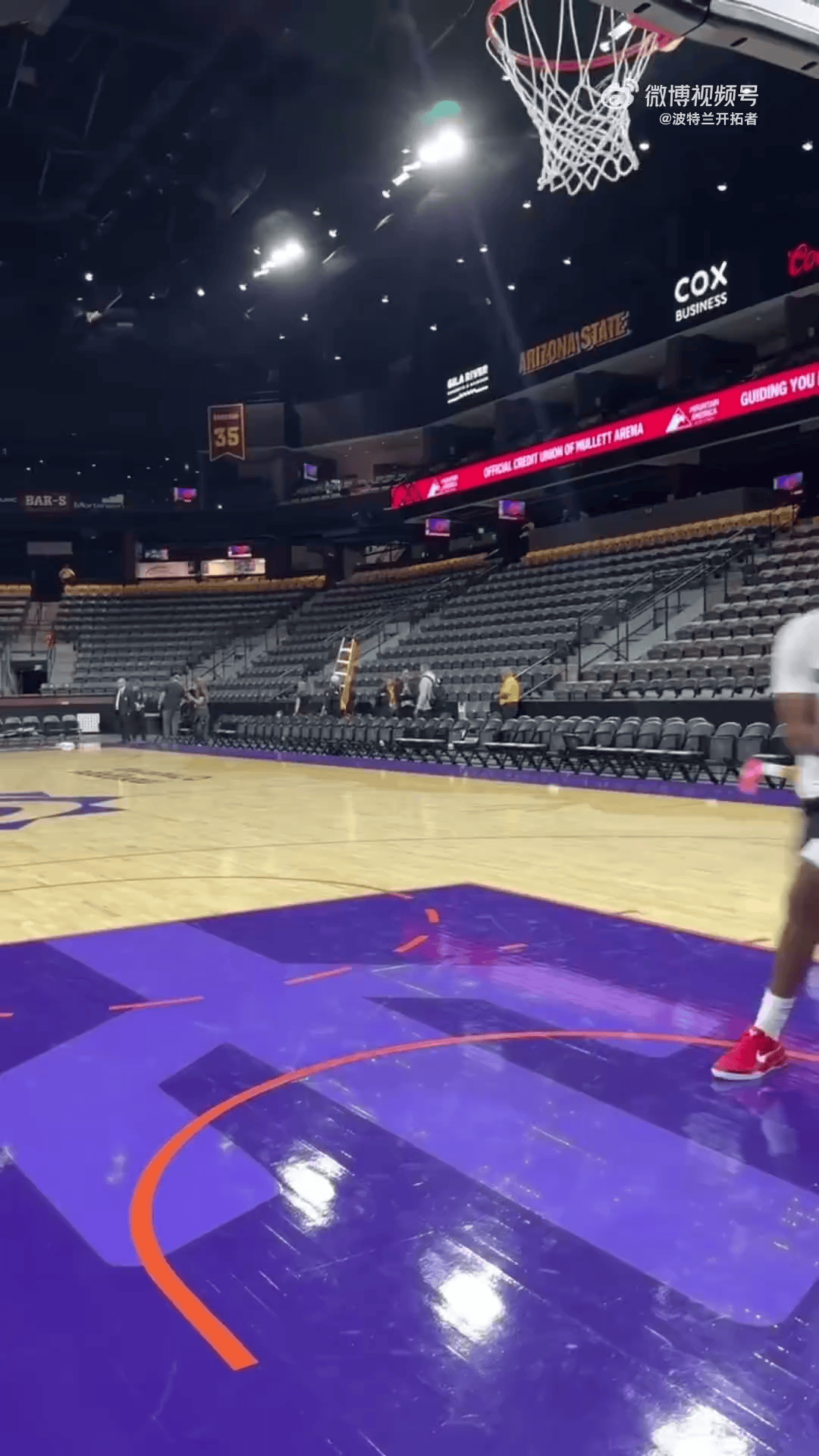 拓记分享杨瀚森赛前热身片段:南湾湖人的主场也是湖人平时的训练馆