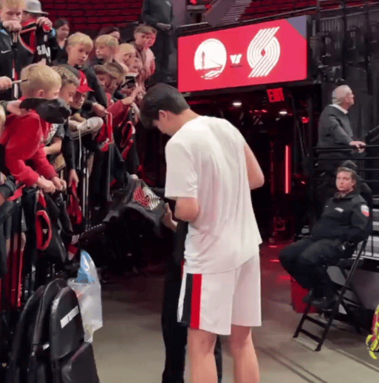 开拓者分享杨瀚森签名片段:小杨签名要签不过来了