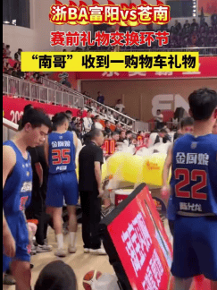 浙BA赛前礼物交换环节,富阳送给苍南一个塞满了的购物车