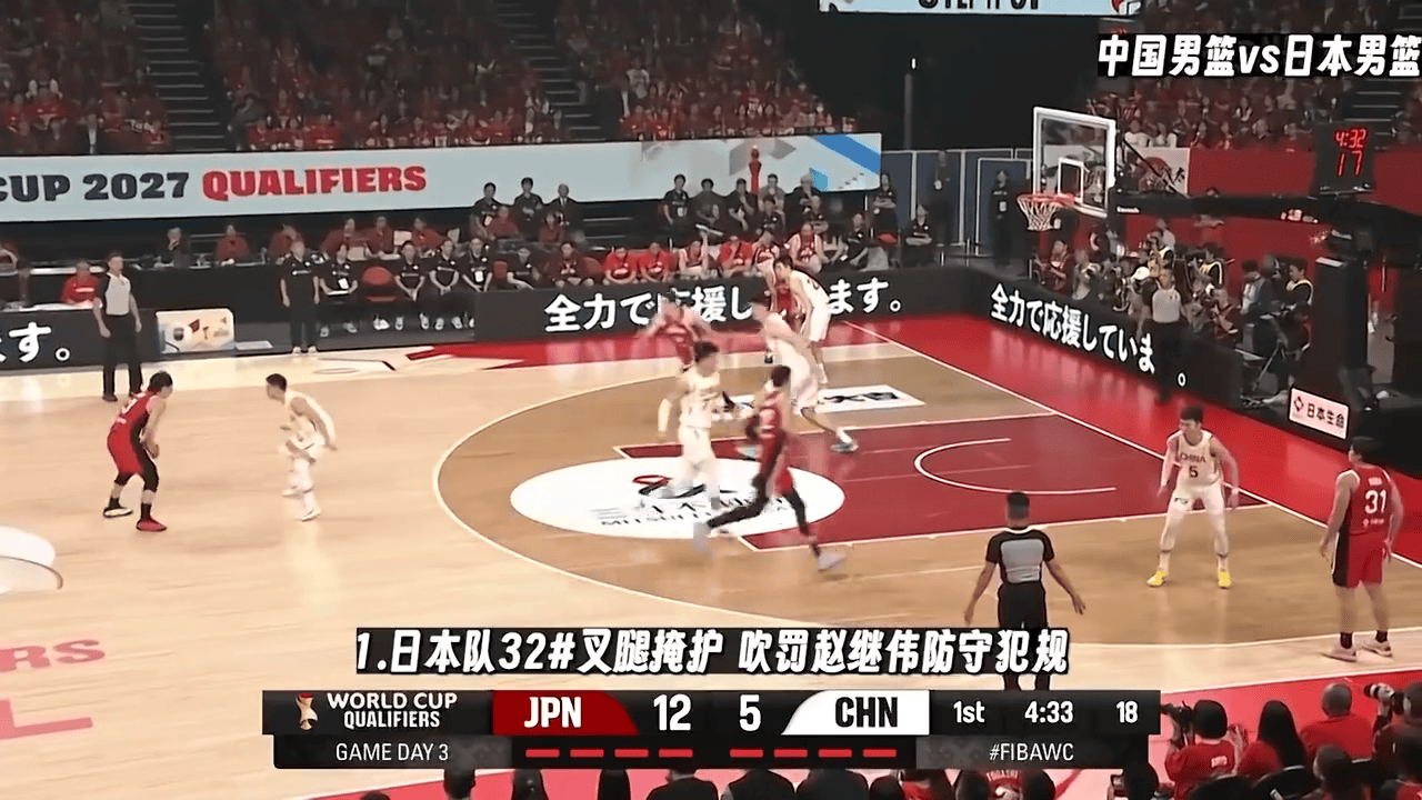 世预赛:廖三宁4分&胡金秋4分,中国男篮首节11-21落后日本