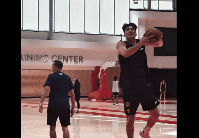 拓记分享杨瀚森赛前视频:斯普利特赛前指导杨瀚森热身