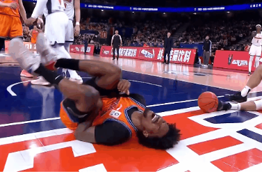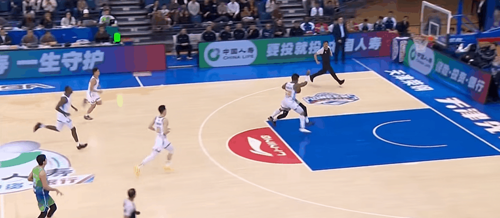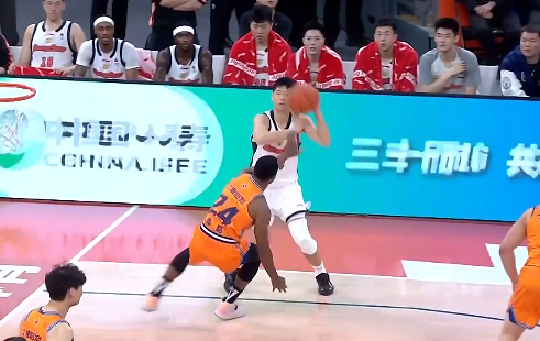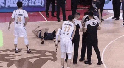 周琦掩护犯规直接顶倒贾昊,后者痛苦倒地久久不起